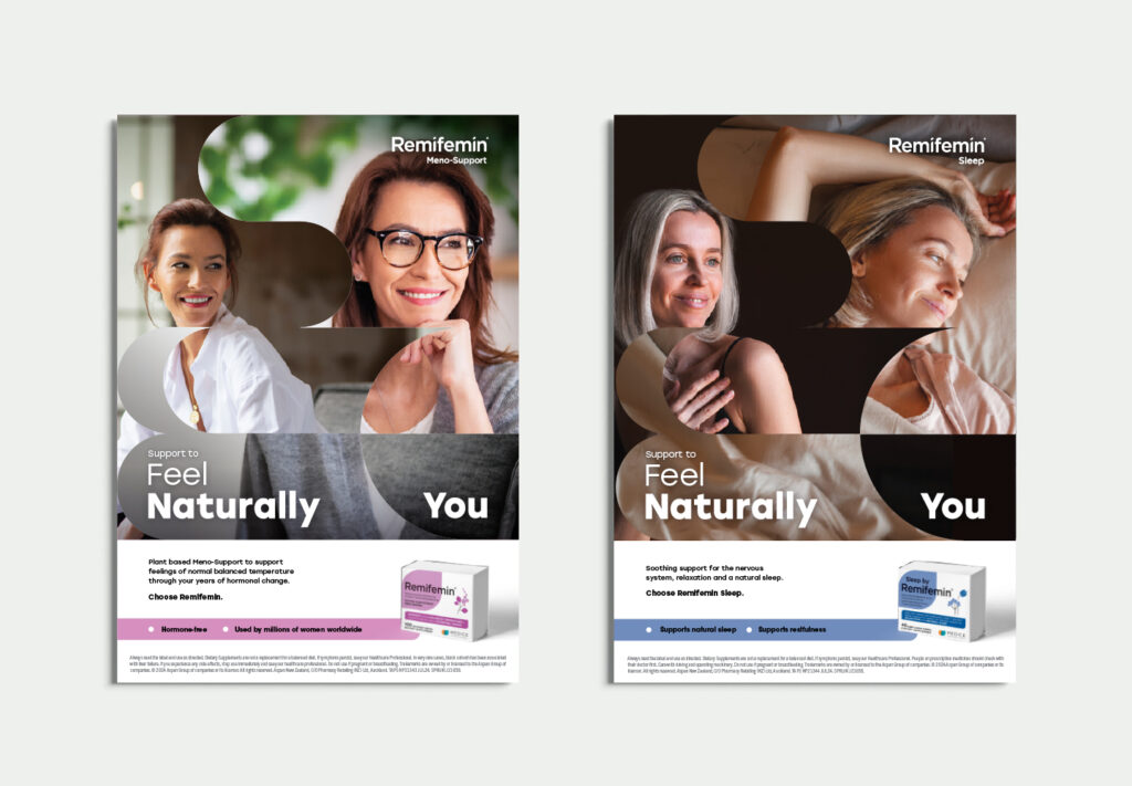Remifemin offers a range of dietary supplements that support women through their years of hormonal change. Research found that individual experiences during this time are multifaceted and encompass a range of physical, emotional, and social factors. Spruik built out the brand positioning and crafted a sympathetic and confident statement to show support and understanding for these psychological and physiological changes: Feel Naturally You