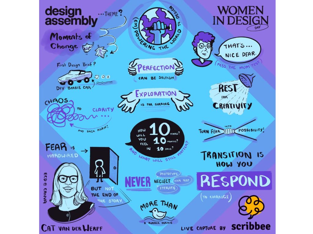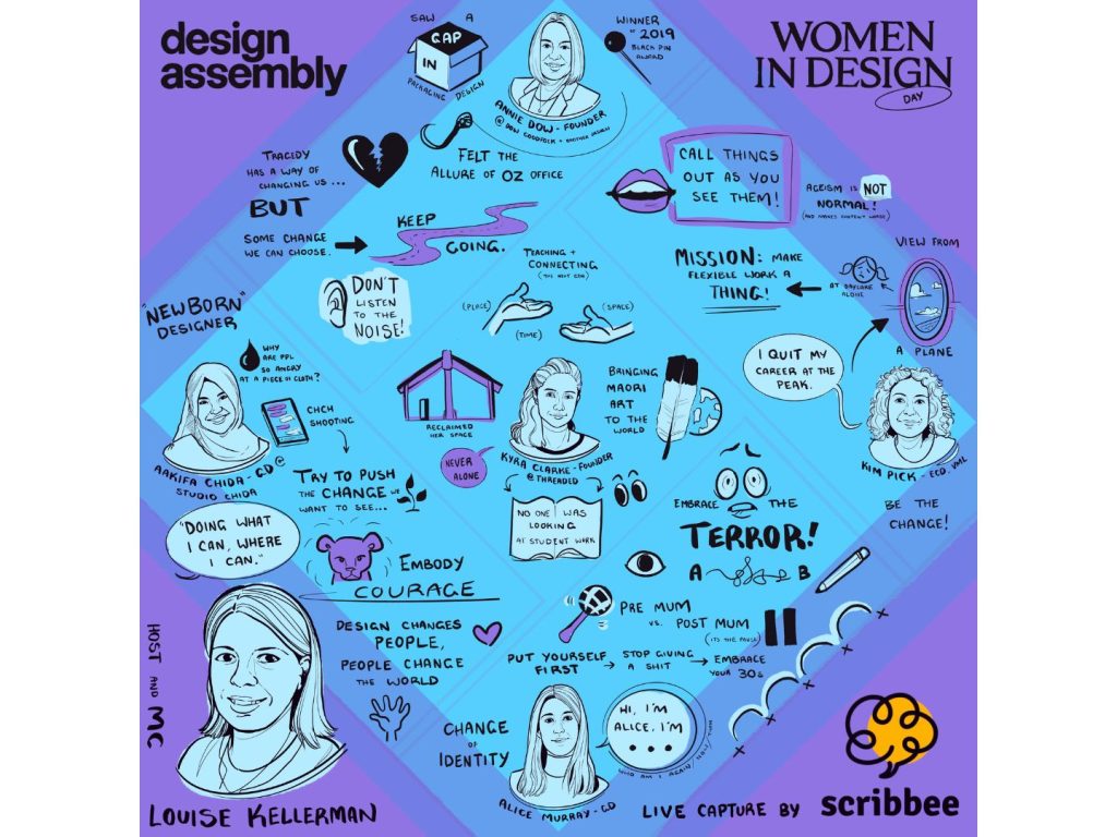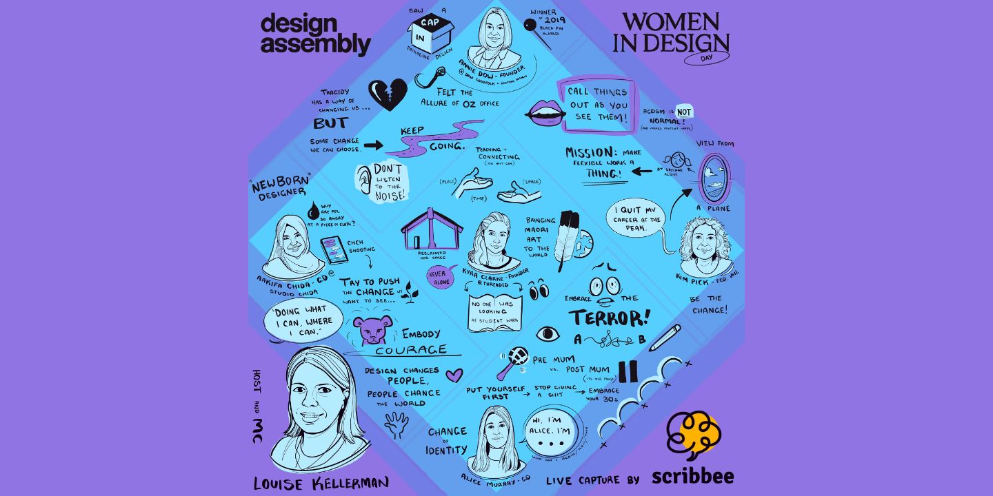 At Women in Design Day 2025: Moments of Change—an annual event dedicated to fostering community, celebration, and education among women in the design industry in Aotearoa New Zealand—we were joined by Issie Loseby, visual storyteller extraordinaire at Scribbee, who made a graphic recording of the event.