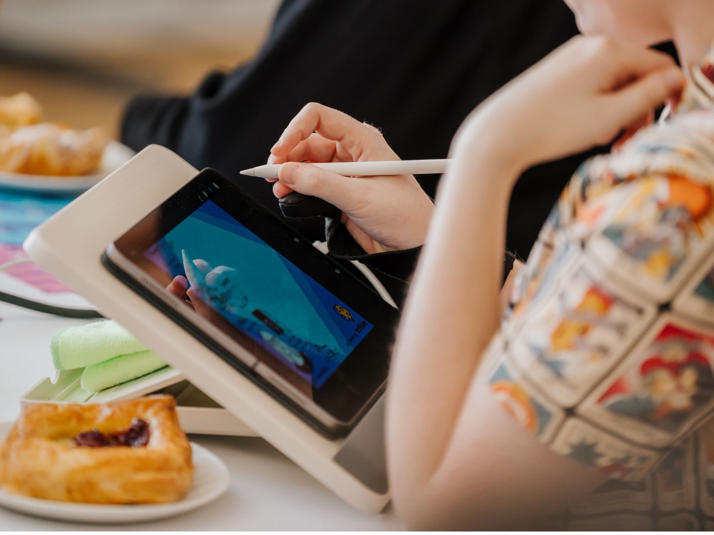 I work on an iPad, primarily in Procreate. On occasion I use Canva for social media, but dabble in all the Adobe products. Recently though, I’ve been learning Affinity, trying to get a bit of breathing room from our Adobe masters. So far, it’s really good! Highly recommend to anyone wanting an excuse to get away from subscription software and AI data scraping. I enjoy Procreate for the fluidity of it, but it can lack the polish required at times.