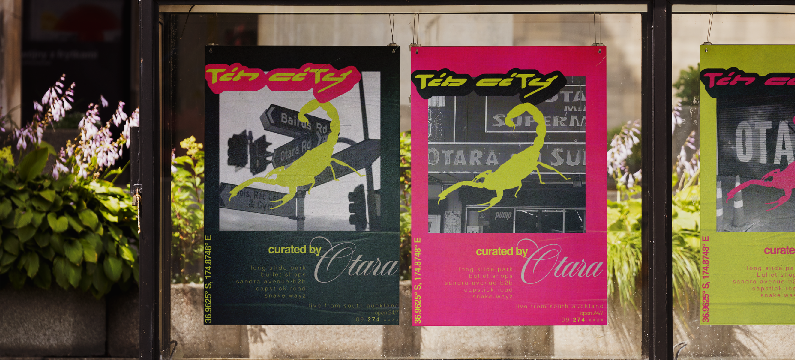 Tin City is the amalgamation of two different cultural spheres being presented as a cohesive and communal visual identity. I designed a bunch of posters, flyers, wristbands, social media posts and even some 3D models to convey this sense of dualism for this conceptual brand. With this project I wanted to explore and bridge the gap between nightclub culture and South Auckland suburbia through the use of visual branding and identity.