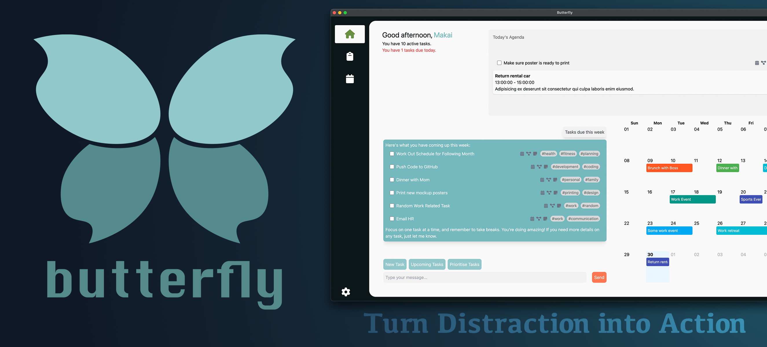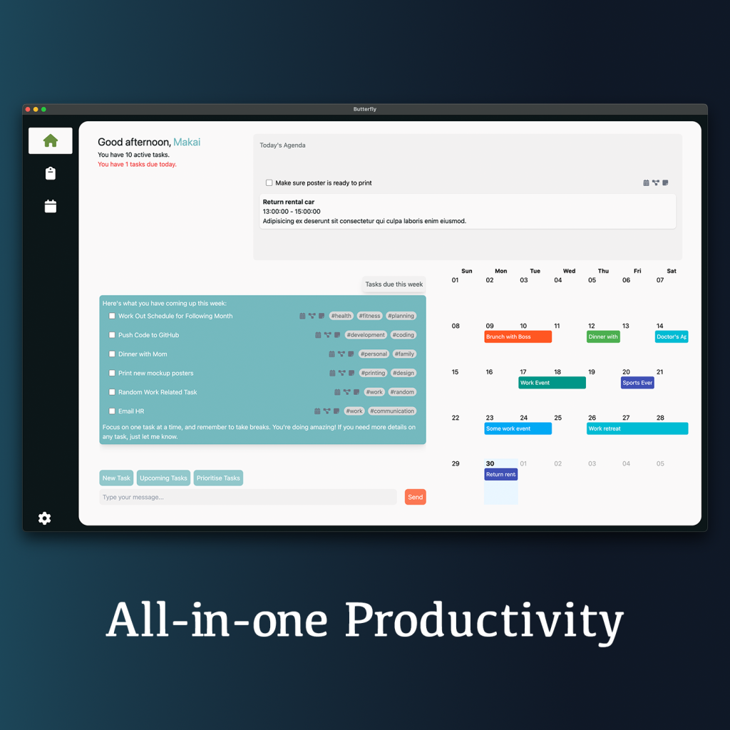 I designed and developed Butterfly, an AI-powered productivity app tailored for neurodivergent professionals, particularly those with ADHD. The app focuses on task management, scheduling, and workflow optimisation, helping users break down tasks into manageable steps, minimize distractions, and stay on track.