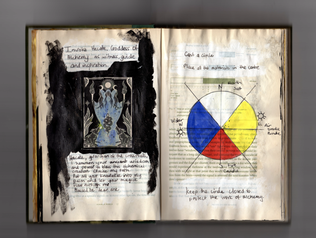 Handmade visual narrative objects explore the world of spells, alchemy and full moon magic. Meet ‘The Watcher’, alchemized with the magickal instructions of a grimoire, and see a real full moon tale transformed into the story of a full moon apothecarist.