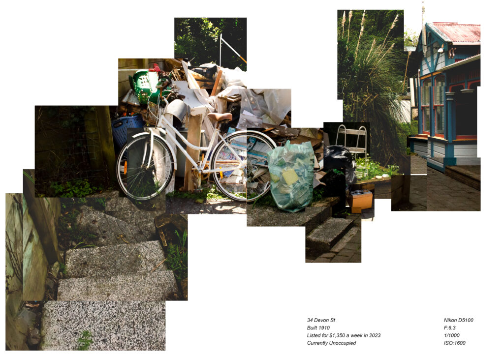 Inspired by the depth of photographic works by David Hockney, I collaged single images of burnt out properties together, highlighting degradation, age and condition. I then captioned the final images with each property’s market value–I had to get an extension from my studies because I was at a tenancy tribunal. It was an incredibly punk, yet fruitful time.