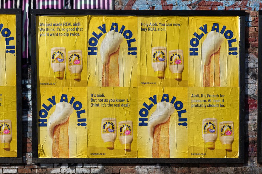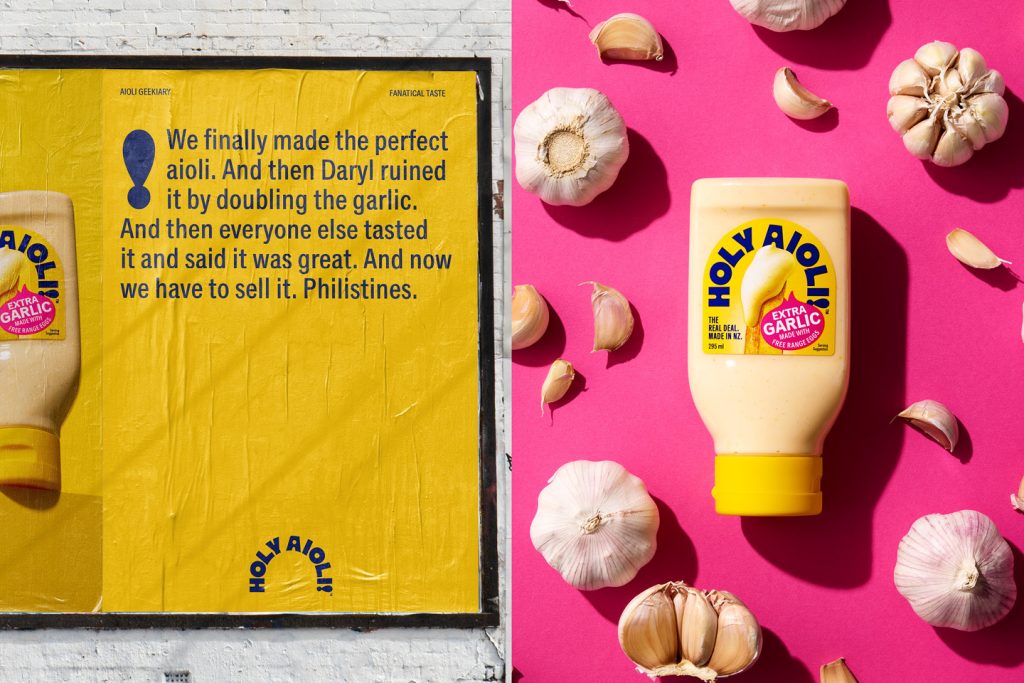Since its launch into the condiment aisle, Tongue and Cheek’s Holy Aioli has established itself as a viable #2 brand for consumers in a category dominated by one large global brand. Proudly New Zealand-made and obsessive about good aioli, it was a brand with a perfectionist mindset.