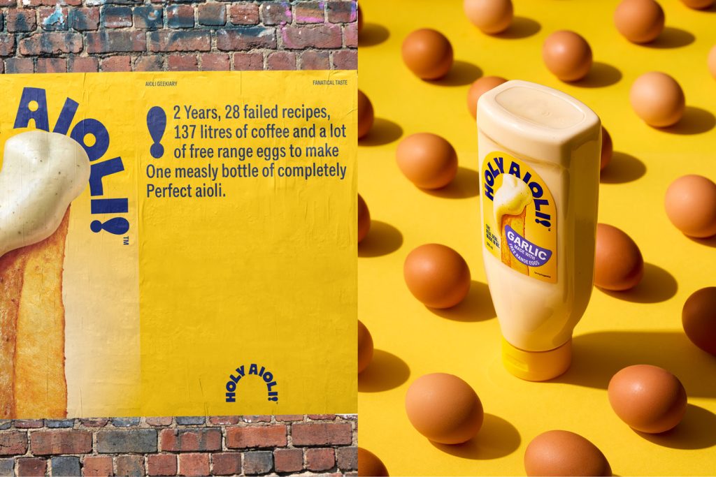 The result is an aioli on a mission: to promote what real aioli is. On the shelf, it is all about the food porn of the perfectly dunked hot chip, as well as being an ever-so-subtle middle finger to the competition.