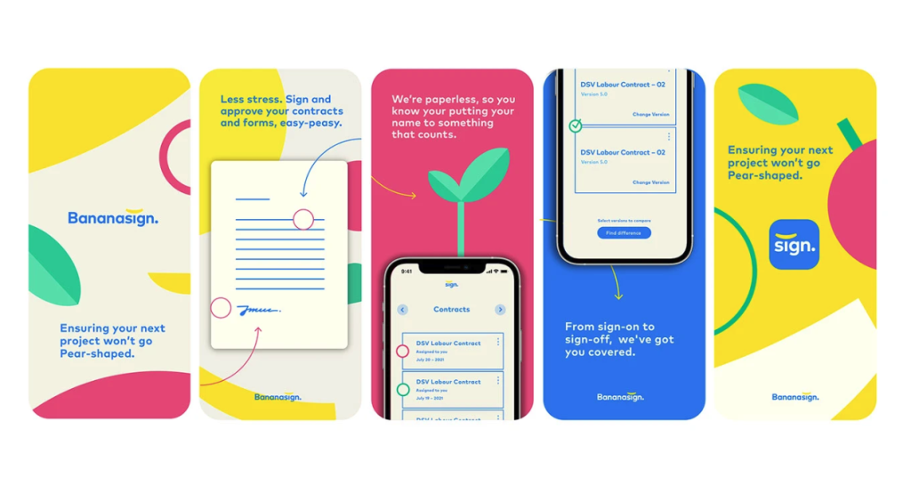– Working with Christchurch-based Nitrolabs to concept, brand and launch Bananasign – a brand new digital document-signing app for the USA market (https://www.behance.net/gallery/198424379/Creating-a-new-document-signing-app-brand)