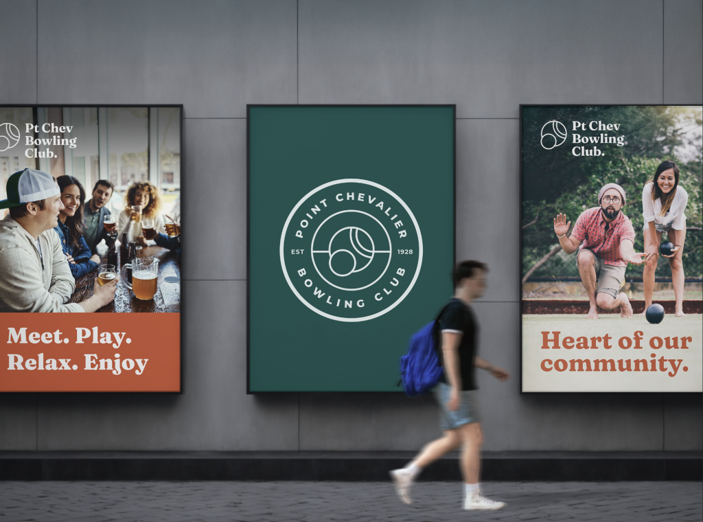 The opportunity came up to work on a brand refresh for our local Point Chevalier Bowling Club, a destination that’s been at the heart of the neighbourhood’s social life for nearly a century. The project was part of a wider effort to grow the customer base and reinforce the club as a go-to spot for catchups, kids’ dinners, sports viewing and of course, bowls.