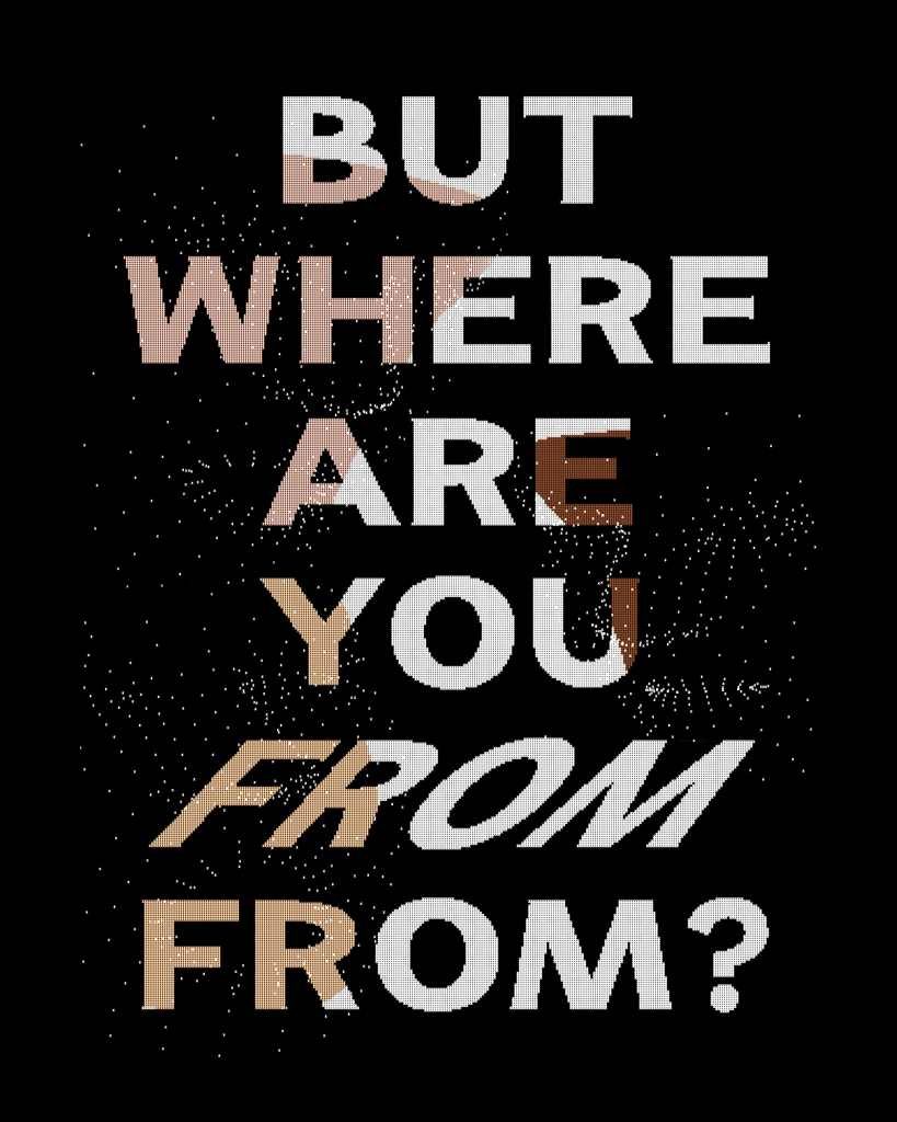 On a less deep note, I’ve been tutu-ing with programming so made this an interactive piece. I created the typeface last year. It changes skin tones when you blink. It goes italics when you open your mouth. Kinda cool.