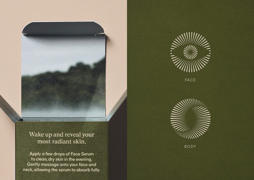 Custom icons distil rituals to their essentials, doubling as on-pack categorisation tools. Their radial, tapered lines create a sense of harmony and zen, which is also present within the illustration style. Photography follows suit: ritual vignettes, tactile application shots, and crisp product portraits form a three-tier library.