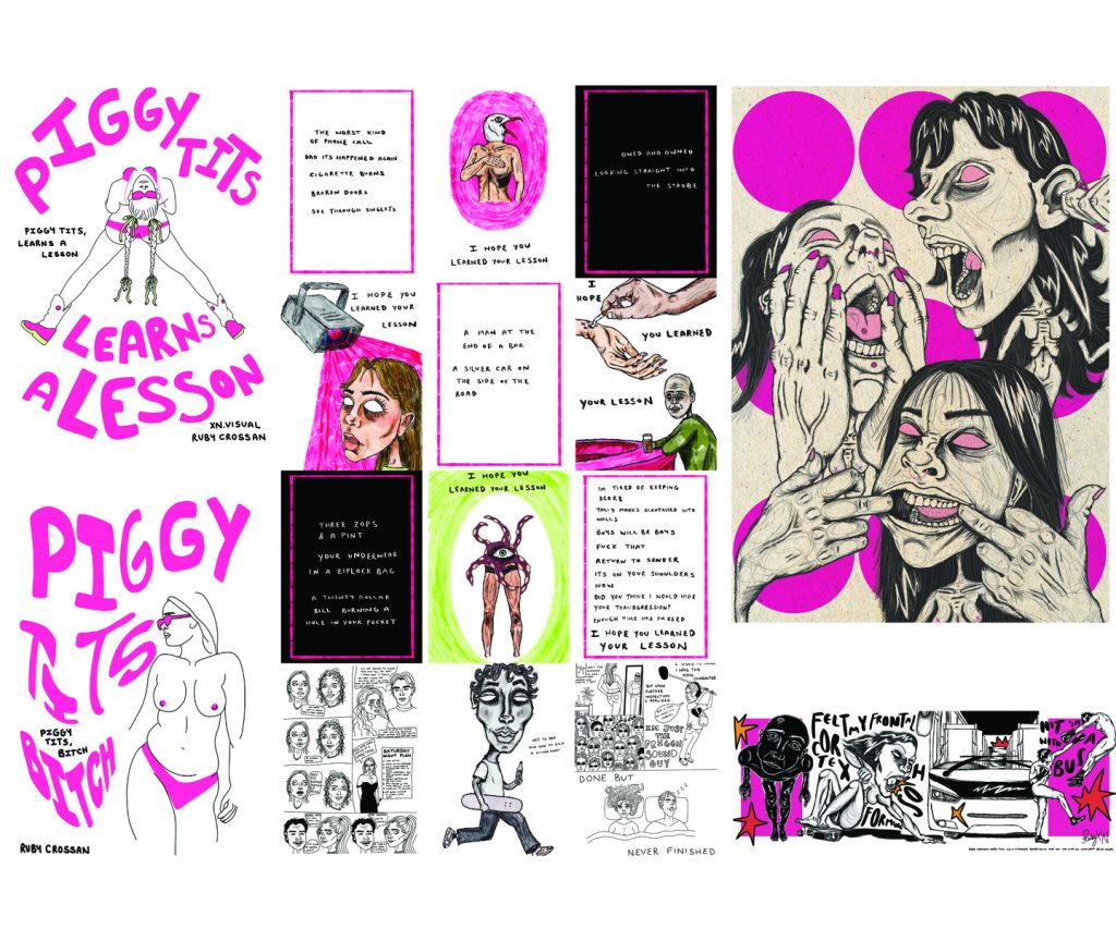 I have a zine series called Piggy Tits, and I am currently working on the third instalment. I’d also love to work alongside other queer designers working in Aotearoa, and I have been playing with the idea of a collaborative zine that shows off all the cool shit we are up to.