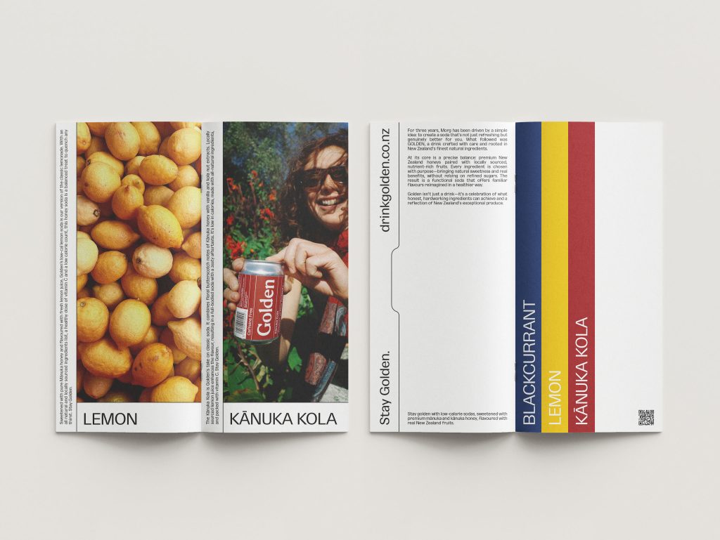 Golden is a low-cal soda sweetened with honey, flavoured with fruit. It offers a functional, healthy alternative to traditional soft drinks by pairing premium honey with locally sourced, nutrient-rich ingredients—avoiding refined sugars entirely. Golden isn’t just a drink; it is a celebration of what honest, hardworking ingredients can achieve and a reflection of New Zealand’s exceptional produce.